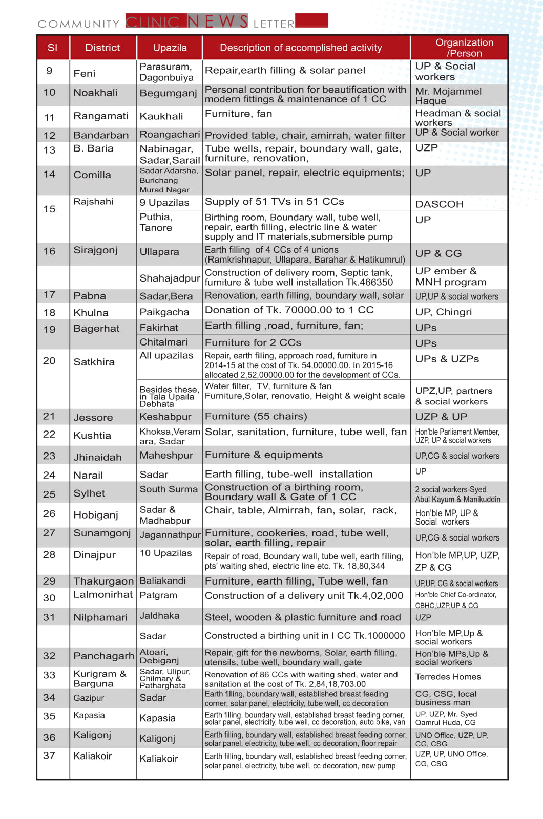 Status of Community Clinic
